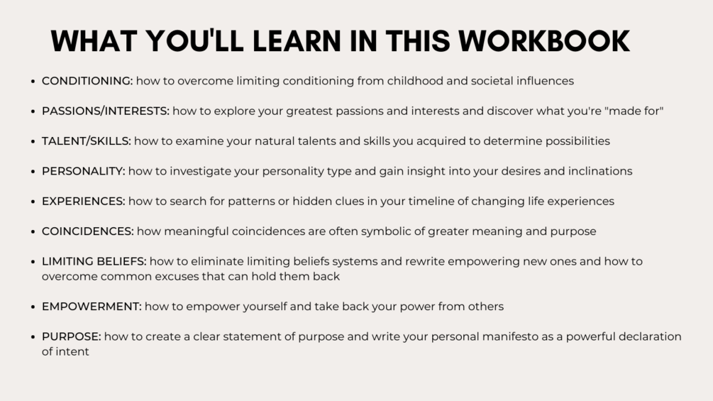 In this workbook, you will learn how to discover your purpose by: